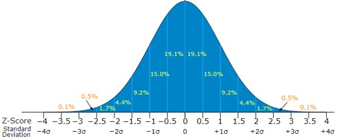 Expected fraction of population inside range | 38,2% | 68,2% | 86,6% | 95,4% | 98,7% | 99,7% |