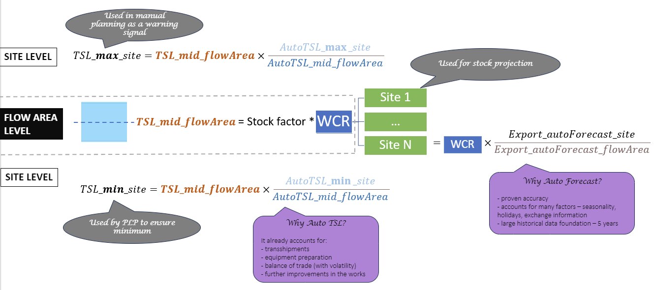 While overriding on site level can be useful in specific geographies, where e.g. inland flow is not too heavy or ingrained part of the planning process yet, there are several thousand sites and working at that granularity is a significant overhead. While Managing Target stock level allows additional mechanisms to influence how pool numbers are split across sites, doing the same for Forecast is currently not considered necessary, especially with eye on a future where inland planning is used globally thus managing on site levels becomes heavy for human efforts.