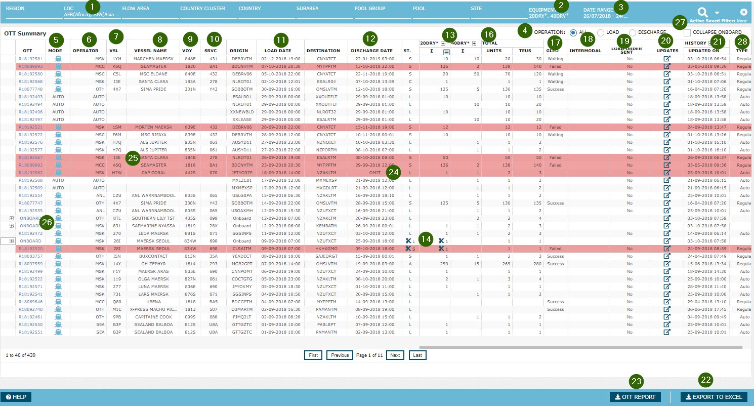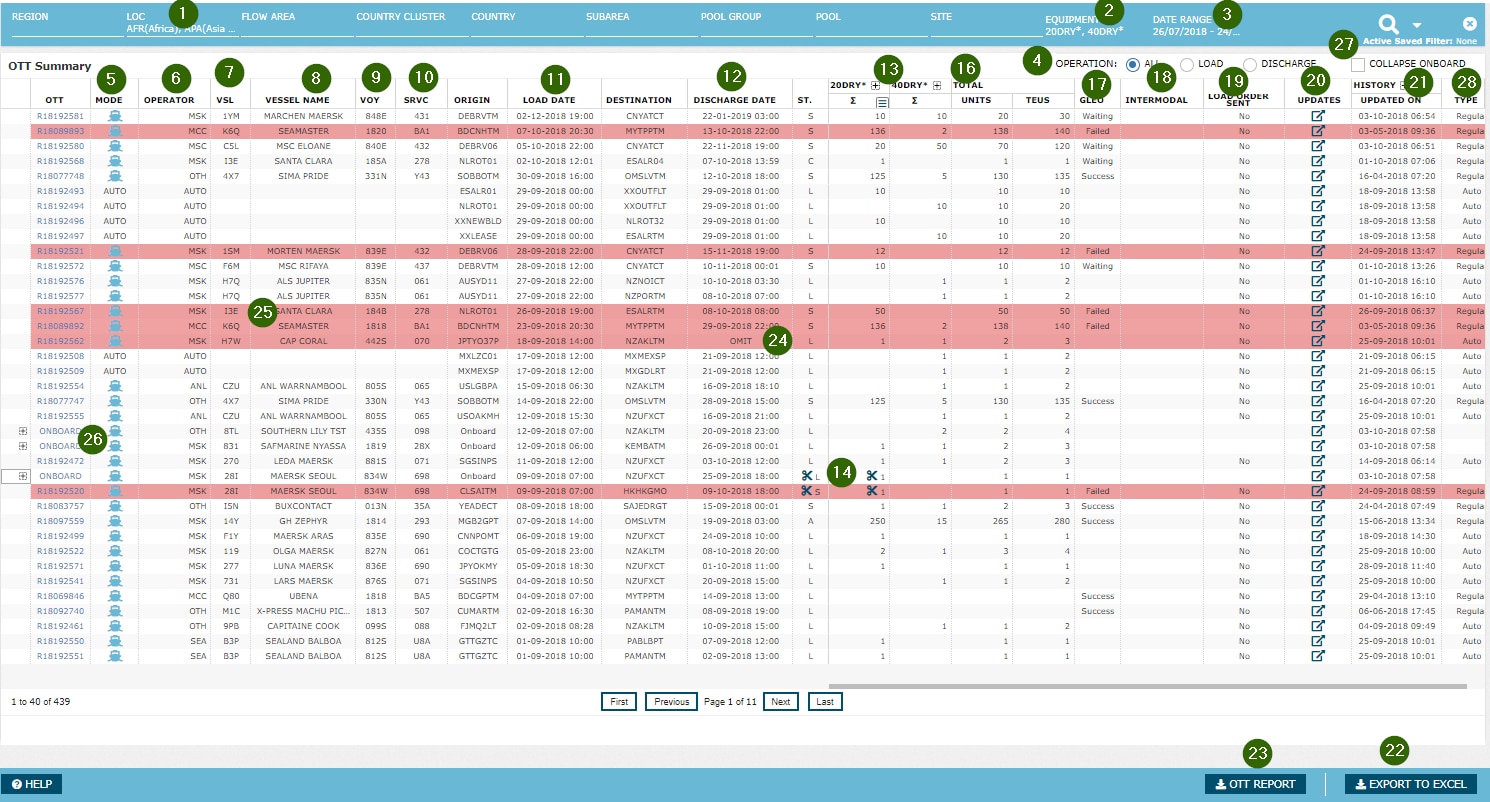 | 23 | OMIT Case | If there is a GSIS OTT with vessel OMIT case, the system displays the OTT row with red Background color. See Reconciliation to read more on OMIT |