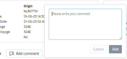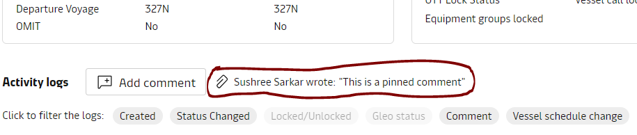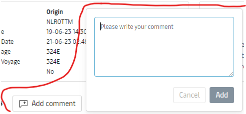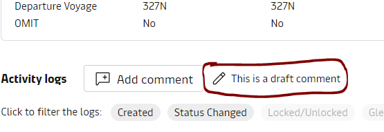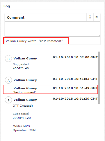The users can enter a comment onto the OTT using the button and pop-up on top of the Activity log. The system displays the last comment entered or the comment that is not yet saved next to the comment box: