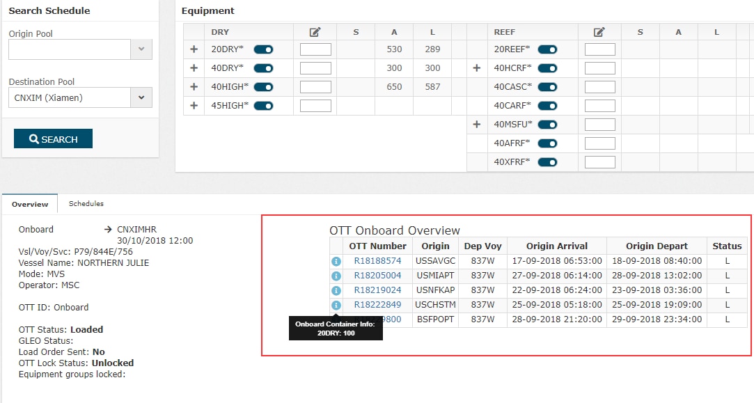 In order to change the schedule of an existing OTT, the user clicks on Change Schedule button on the page footer and chooses a schedule. When the user is changing schedule, the system shows schedules where 'Origin ETA' >= [OTT Load Date - 10 Days]. This feature of changing to an earlier schedule was designed to allow the users to manage GSIS mismatch cases where the system cannot resolve automatically. Read more on GSIS mismatch case on Reconciliation