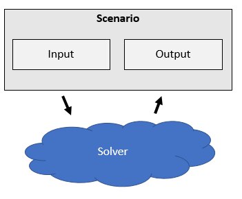 To correctly capture optimisation problems for the solver, relevant data is collected and managed as a "Scenario", consisting of multiple data inputs (e.g. network, current stock, ROFO empty forecast etc.), and the data outputs of the solver, i.e. the result.