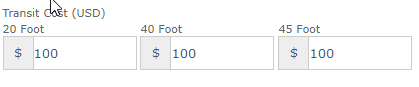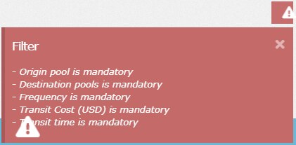 Transit Cost | This input field specifies the average transportation cost introduced to the company moving empty containers on the corridor, from origin pool to destination pool. Inputs are captured in USD for per equipment size category, i.e. "20 Foot" ,"40 Foot" and "45 Foot". | ||||