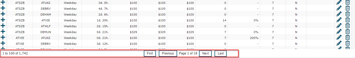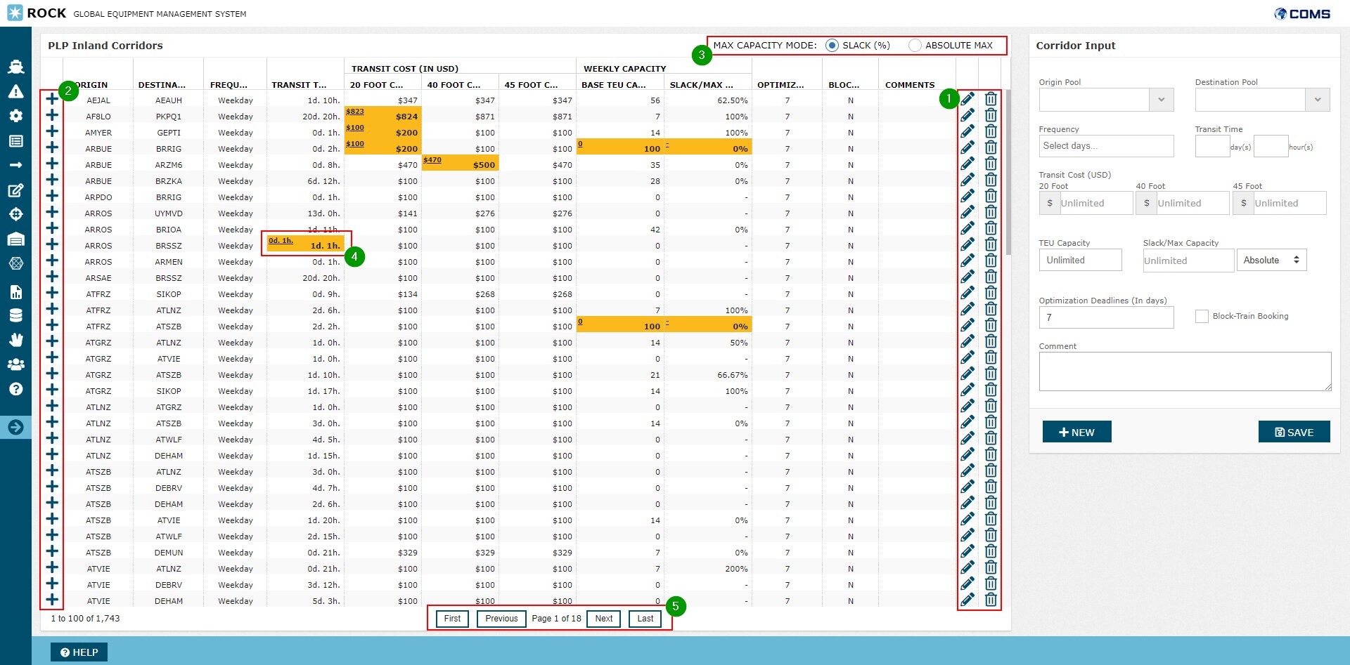 | 5 | Pagination | The grid features pagination controls, where the system displays 100 corridor records per page at a time: |