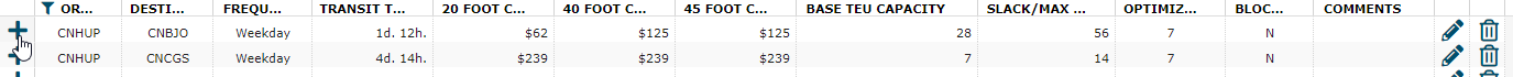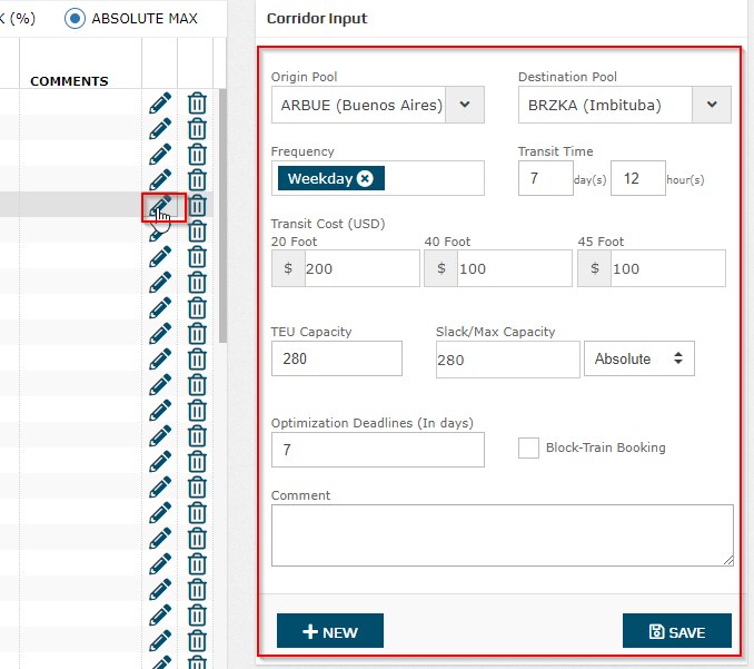 TEU Capacity | This input field specifies the default weekly capacity per week, that optimiser can move on the corridor from origin pool to destination pool. Inputs are captured in TEU starting from 0 TEU. If the value '0 TEU' is specified, then PLP can not suggest any empty flows on the corridor. | ||||