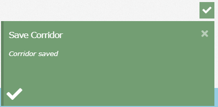 If the validations succeed, the system saves the new corridor and displays a confirmation message: