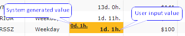 | 4 | Modifying Cells | When the user modifies any input for a corridor, the screen will highlight the cell where change was done. The highlighted cell will also show 'system generated value' in a smaller font at the top-left of teh cell and user input value in larger font at the right of the cell: |