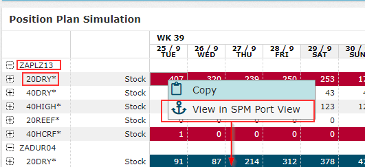 | 8 | View in SPM Port View | When the user right-clicks on any row on PPS grid, a command appears: 'View in SPM Port View'. When the user clicks on this command, the system opens SPM Port View screen in a new tab, automatically populating Global Filter selections with the geo/equ row on PPS and fetching data: |