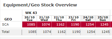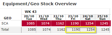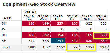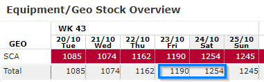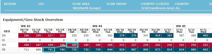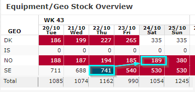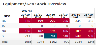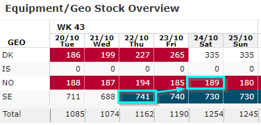 (2) Stock Projection On Country Cluster Hierarchy Given I have pulled a report for "Equipment/Geo Stock Overview" And geo selection is Scandinavia (SCA country cluster). |