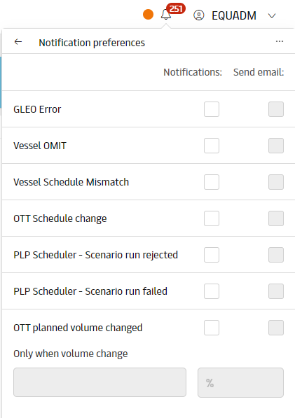 | 3 | OTT Volume Change | The planned volume on the OTT for one or more equipment type changes | All the users on the OTT log who once changed this OTT, except the user who is doing the change | 'Volkan Guney changed the volumes on OTT R17169041' | The user can set a threshold as to how big a volume change should be in order to notify. Possible to select Units, % or TEU. Default is 10%. |