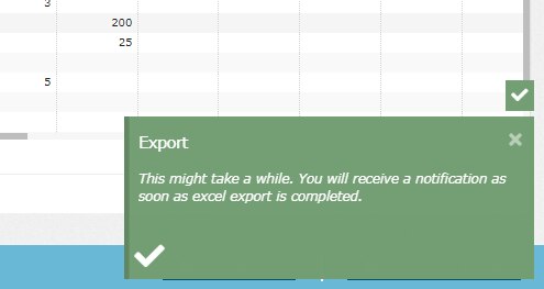 ROCK uses the notification system also in relation to excel import/export jobs. Across ROCK there are numerous screen where user can export ROCK data to Excel or import Excel content into ROCK. Depending on the amount of data chosen, these operations can take a long time, keeping the user tied to the screen and even potentially causing time-outs and result in no data retrieval at all. To address this issue, ROCK attempts to complete the job for 5 seconds first. If the job is not complete, ROCK shows a message to the user saying that they will get a notification when it is done, and runs the job in the background instead, in an asynchronous manner. Later when ROCK completes the job with success or failure, it automatically generates a notification for the requesting user and displays it on the Notifications grid.