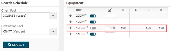 - Mapping of each equipment number to the ROCK Equipment Groups - e.g. "40HIGH*" (see RKEM Mapping)