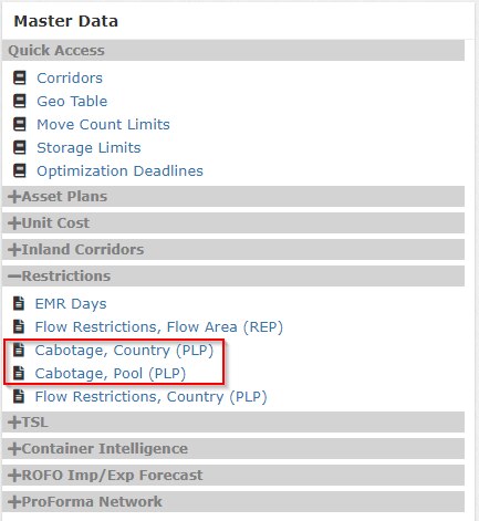 Country flow restrictions can be used to prevent PLP to create OTTs between specific countries. Reference data can be accessed in reference data: "Flow Restrictions, Country (PLP)".