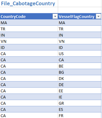 In many cases, allowed coast-wise flows are determined based on registered vessel flags of a vessel. Reference data can be accessed in reference data: "Cabotage, Country (PLP)".