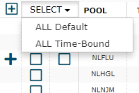 Time-Bound constraints can be added to pools by selecting the "Default" row using the checkboxes in the grid