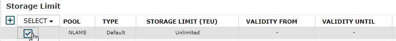To change the default storage limit value or the storage value to a time-bound storage limit, the user must select the specific constraint by using the checkboxes in the grid.