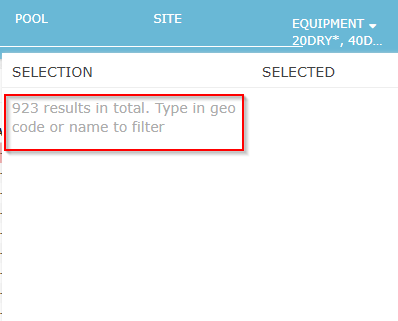 Note that depending on the screen, the selector might allow one equ type or multiple equ types. Below example is from Equipment-Geo Stock Overview: