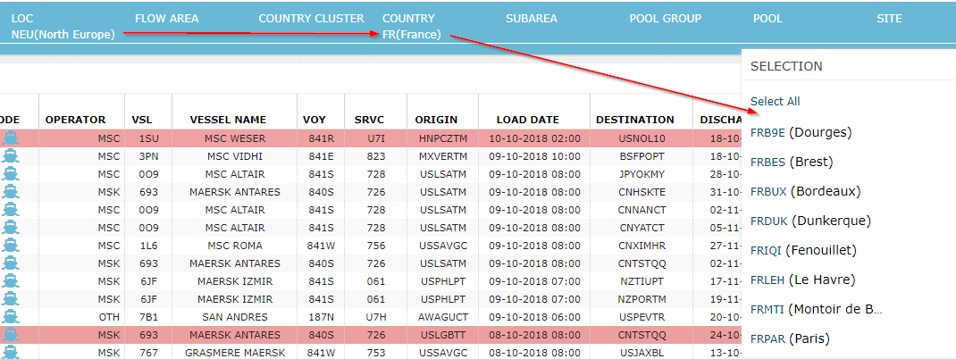 The relationships between geo levels are not necessarily directly hierarchical, as stated in Geo Data. For instance, France country has separate pools under NEU and SEU LOCs. However, global filter will display the same pools when France is selected as the country, regardless what is selected for LOC. In other words, the selections are restricted as per the nearest selection to the left, rather than taking an intersection of all the selections. In the example here, Global Filter cannot display the list of pools under France country and under NEU. The list of pools is the same whether NEU or SEU is selected as LOC, or no LOC is selected.