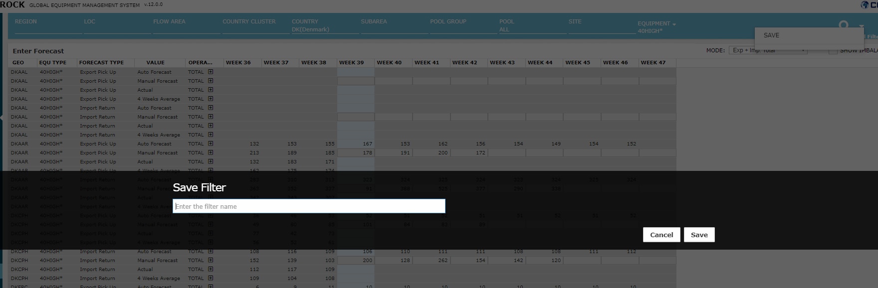 On any screen with the Global Filter ribbon on top, the user click on the arrow button at the right-hand end of the ribbon and clicks Save button: