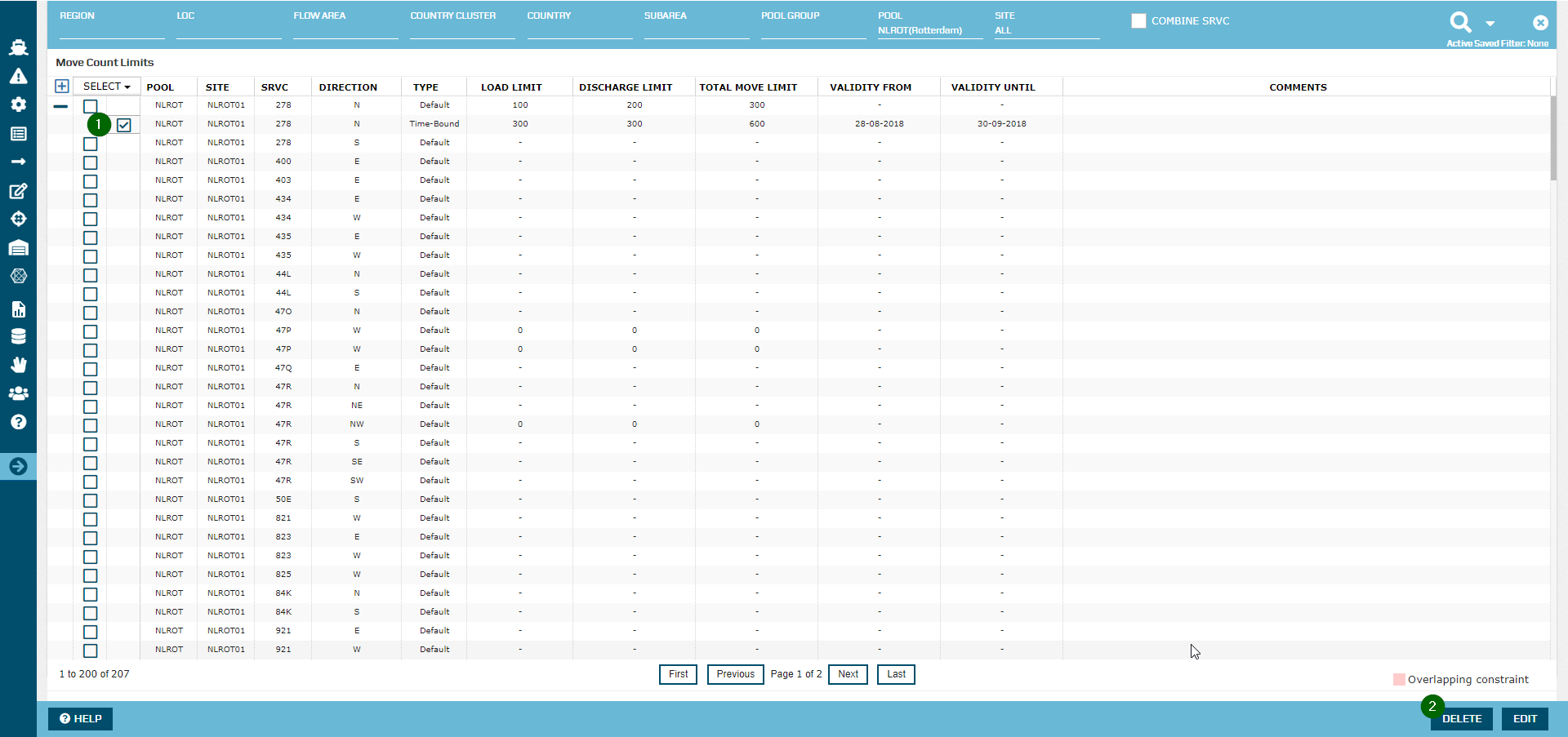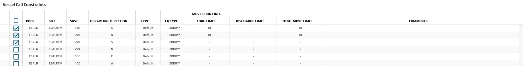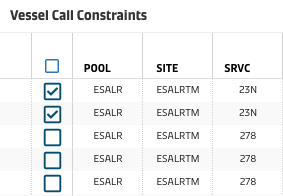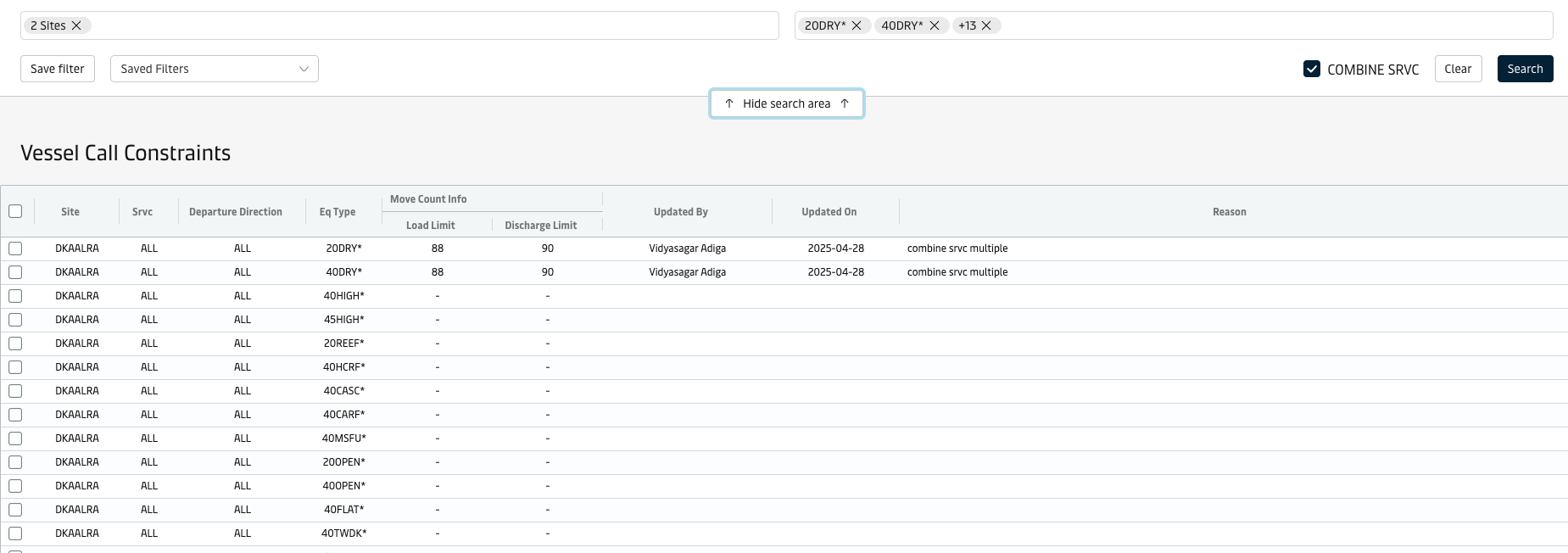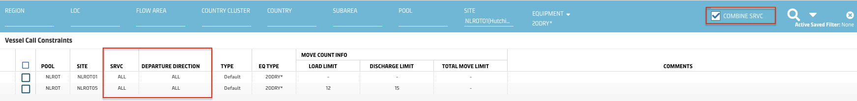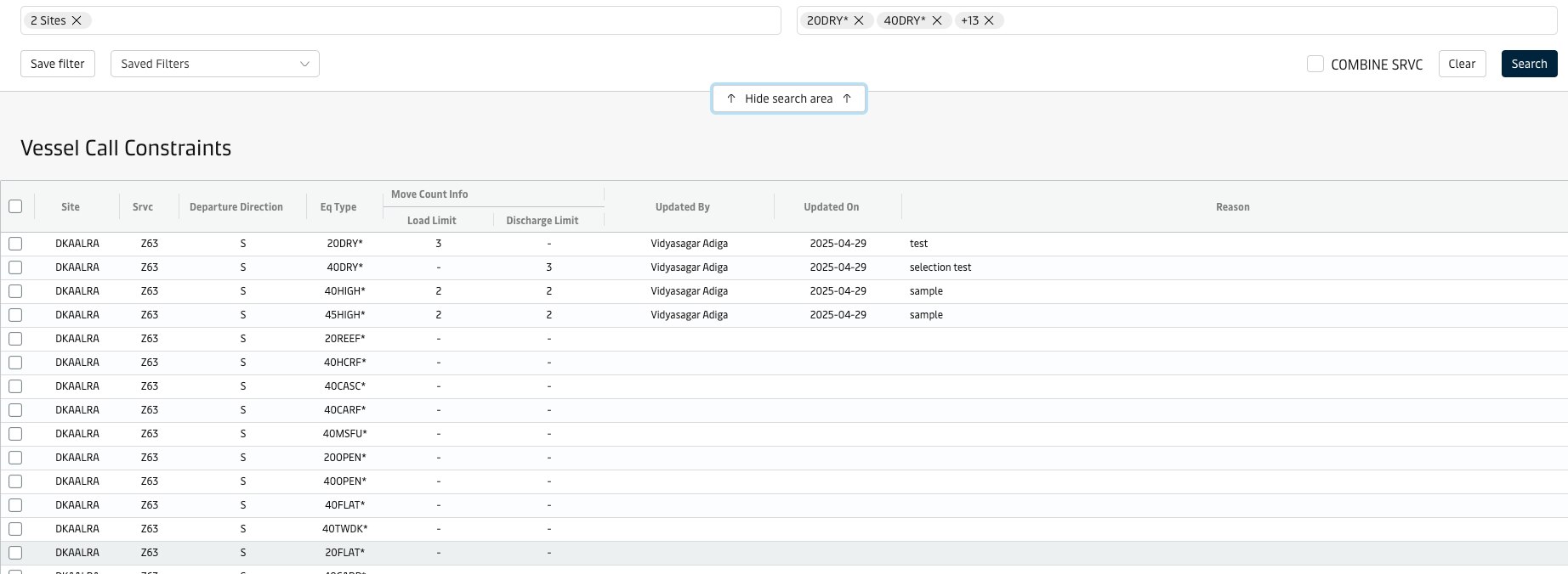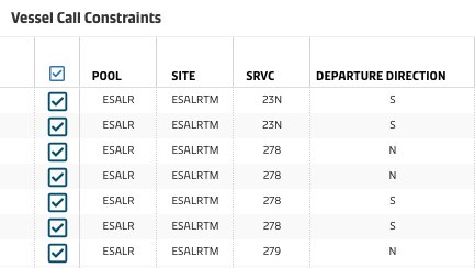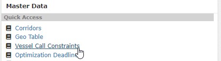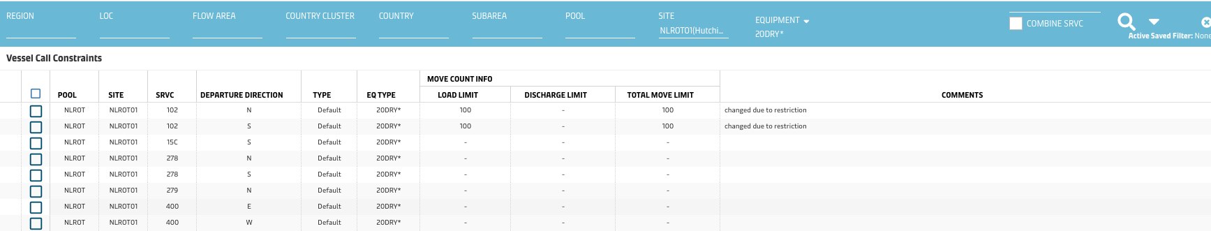 The Vessel Call Constraints can only be searched at site level, so the user can narrow the search by giving values in higher geo fields but site needs to be selected to see the data.