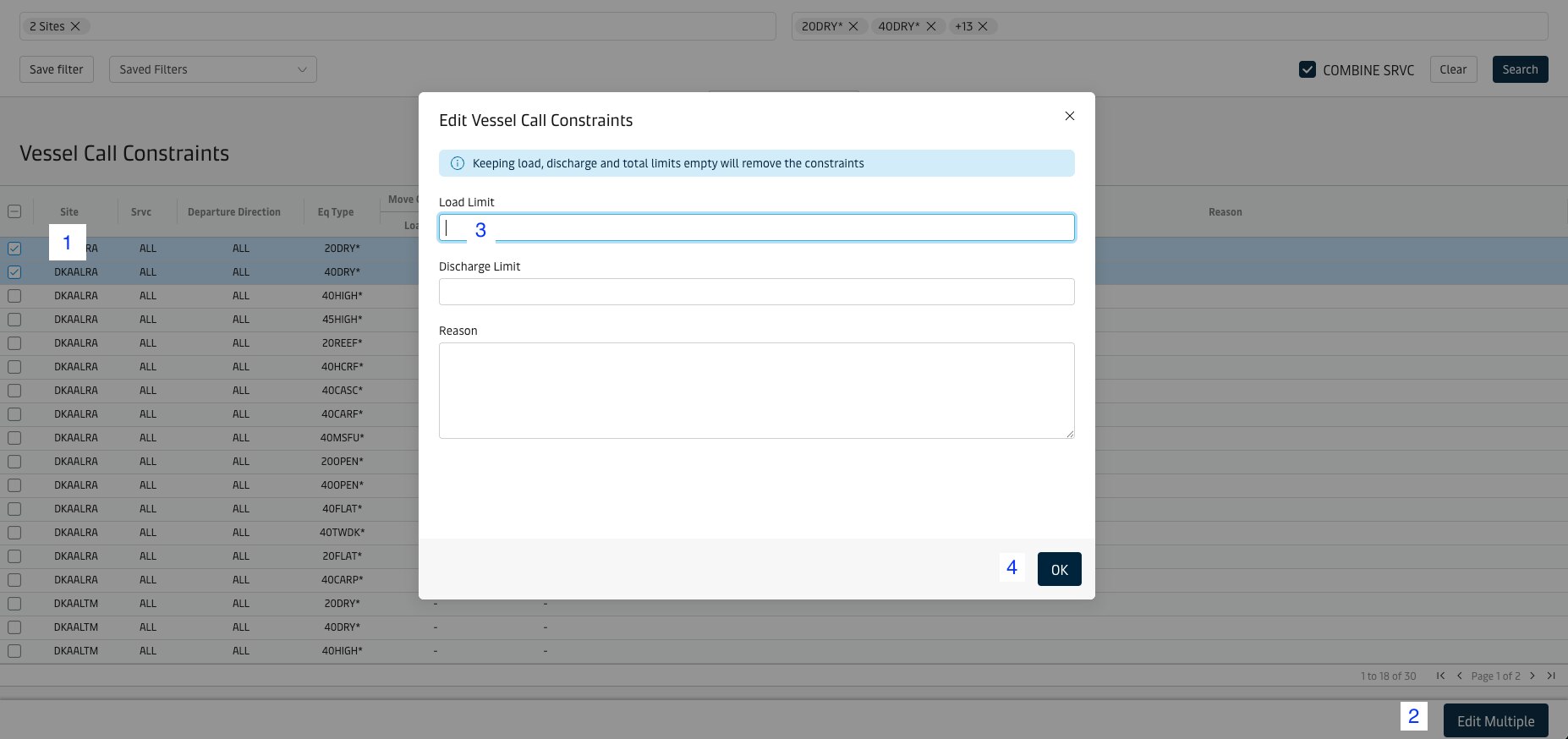 Click OK to save move count limits. (This will remove the move limits for selected rows)